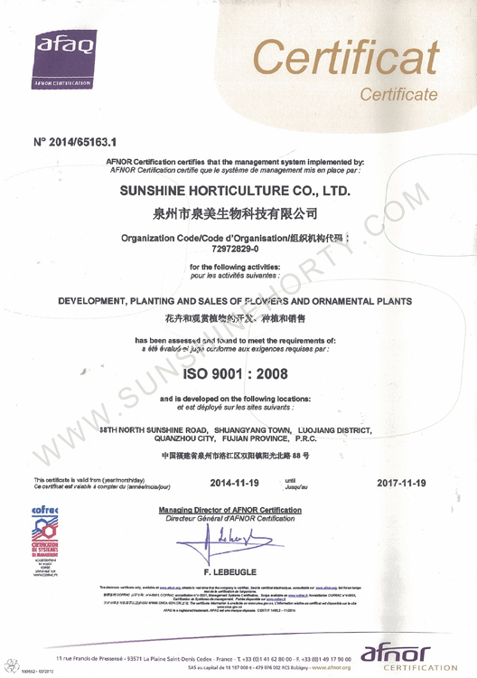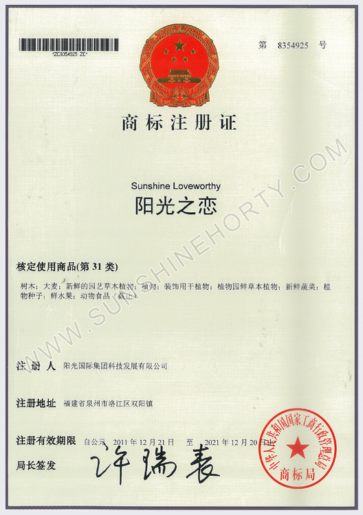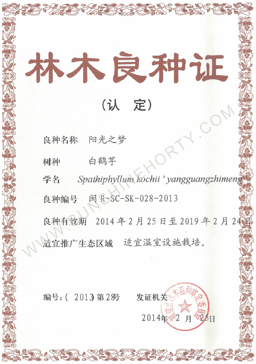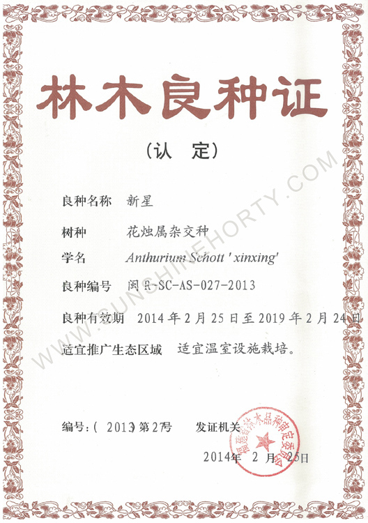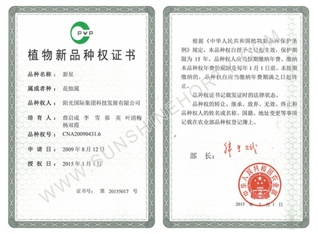 公司先后申報了20多項專利,獲準專利15個,通過新品種省級認定4個。自主選育的新品種“新星”紅掌、“紅心”紅掌獲農(nóng)業(yè)部新品種權保護;“陽光之夢”,“陽光之戀”,“陽光之星”系列白掌新品種獲產(chǎn)品商標保護。公司對自主知識產(chǎn)權進行了有效保護。