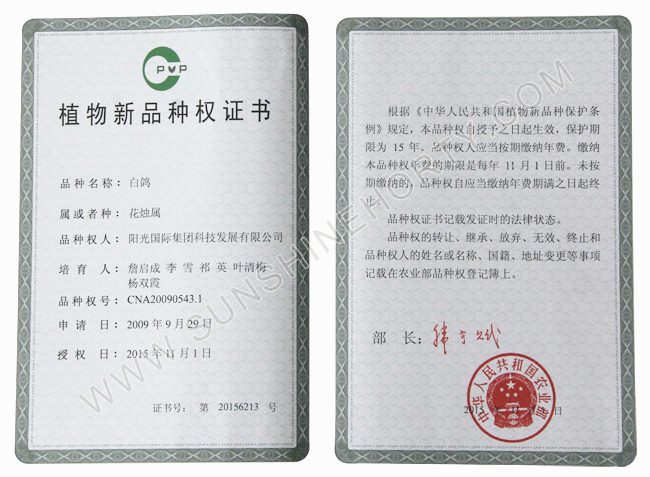 植物新品種權證書
